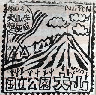 スタンプ4つのうち、左側上は宝牛、左側中は大山寺、