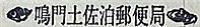 | 鳴門北灘郵便局(なるときたなだ 62121) 他の鳴門市内局と似ているが、うず潮エリアから離れるため、タイのみ の絵入り。かつミンさん提供。 |