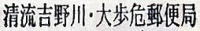 「足元の石場の間隔が広く、小股で歩くと危ない」という由来のある地 名。大歩危同様渓流美とあせて温泉も楽しめる。琵琶湖の花さん提供。 こちらもR06-10-23かつミンさん訪局時には新たな温泉マークのスタン プと共に、妖怪村のも作られていた。 |