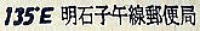 かつての明石大蔵局が24-06-11に移転した先が、日本標準時の基準 となった東経135度の場所であったことから局名も改称。局前の歩道に 東経135度を示す表示がある他、駐車場や局舎内には東経135度の線が 描いて示してある。キャットさん提供。 R06-06-12マリンエアさん使用確認。 |