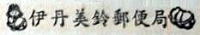 女の子が鈴を持っている絵。鈴は局名にちなんだものだろう。という ことは、この女の子は「美鈴ちゃん」?と考えてしまう。柳穂さん提供。 28-04-19までは使用確認されているが、30-04-18にたみっちゃん2さん 訪局時には、絵入りのスタンプが壊れたため局名のみとなっていた。 しかし、スタンプを新調したようで、R05-03-14おばけのQ太郎さん訪局 時には右側の2つが使われており、R06-08-14かつミンさん訪局時は、 左側下のものも含めた3種類を使用確認。 |