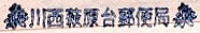 | 西宮香枦園郵便局(にしのみやこうろえん 43540) かつての香櫨園遊園地の名を残す局名。近くに桜の名所である夙川公園 があることから、桜の絵入りのようである。柳穂さん提供。 |