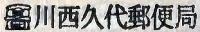 | 川西加茂二郵便局(かわにしかもに 43768) ぱっと見た目が川西久代局のものと少し異なるが、こちらも川西市の キャラクターきんたくん。おばけのQ太郎さん提供。 R06-08-14かつミンさん使用確認。 |