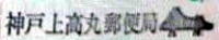 | 新長田駅前郵便局(しんながたえきまえ 43239) 神戸神楽郵便局(こうべかぐら 43189) 神戸水笠郵便局(こうべみずかさ 43401) 神戸二葉郵便局(こうべふたば 43267) 神戸久保郵便局(こうべくぼ 43167) 神戸大橋郵便局(こうべおおはし 43322) 神戸海運郵便局(こうべかいうん 43385) 神戸本庄郵便局(こうべほんじょう 43297) JR神戸線新長田駅から鷹取駅にかけての郵便局は皆揃って、郵便貯金の キャラクターであるユウちゃんの絵入り。ここにある8局の他、神戸山下 局、神戸大道局を合わせた全10局だそうだ。ここまで揃えたのに、この エリア内にある長田郵便局が、絵入りではないのが不思議。 2007(平成19)年10月からの民営化によりゆうちょ銀行が発足したから か、ユウちゃんは引退。H20柳穂さん訪局時には使われていなかった。 |