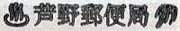 美白効果があるメラの湯や、刺激性の薬草の湯で知られる芦野温泉 にちなみ、温泉マーク入り。局名の右側は、松尾芭蕉や与謝蕪村が 句を詠んだ事でも有名な遊行柳の絵入り。かつミンさん提供。 |