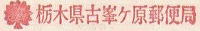天狗信仰のある古峯(ふるみね)神社周辺を、古峯ヶ原(こぶがはら (“古峰ヶ原”と表記する場合もあり))と呼んでいる。スタンプの絵は 天狗の団扇。R02-06-19かつミンさん訪局時は県名が抜けていた。 R04-10-18そてつさん訪局時は再び県名が入り、赤色インク使用に。 R06-07-26soya119さん赤色インクのみ使用確認。 |